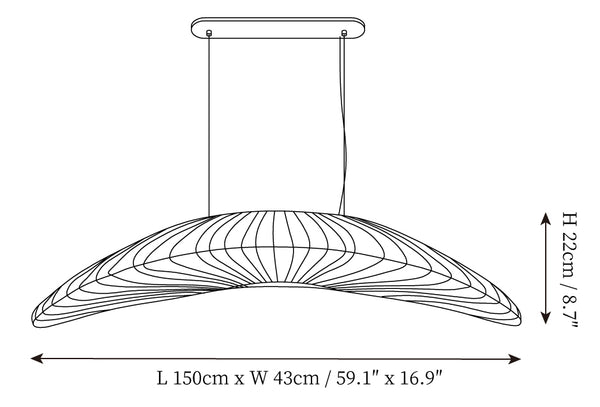 - Size: L 150cm x W 43cm x H 22cm / L 59.1″ x W 16.9″ x H 8.7″ (E27 bulbs: 2 Pieces)