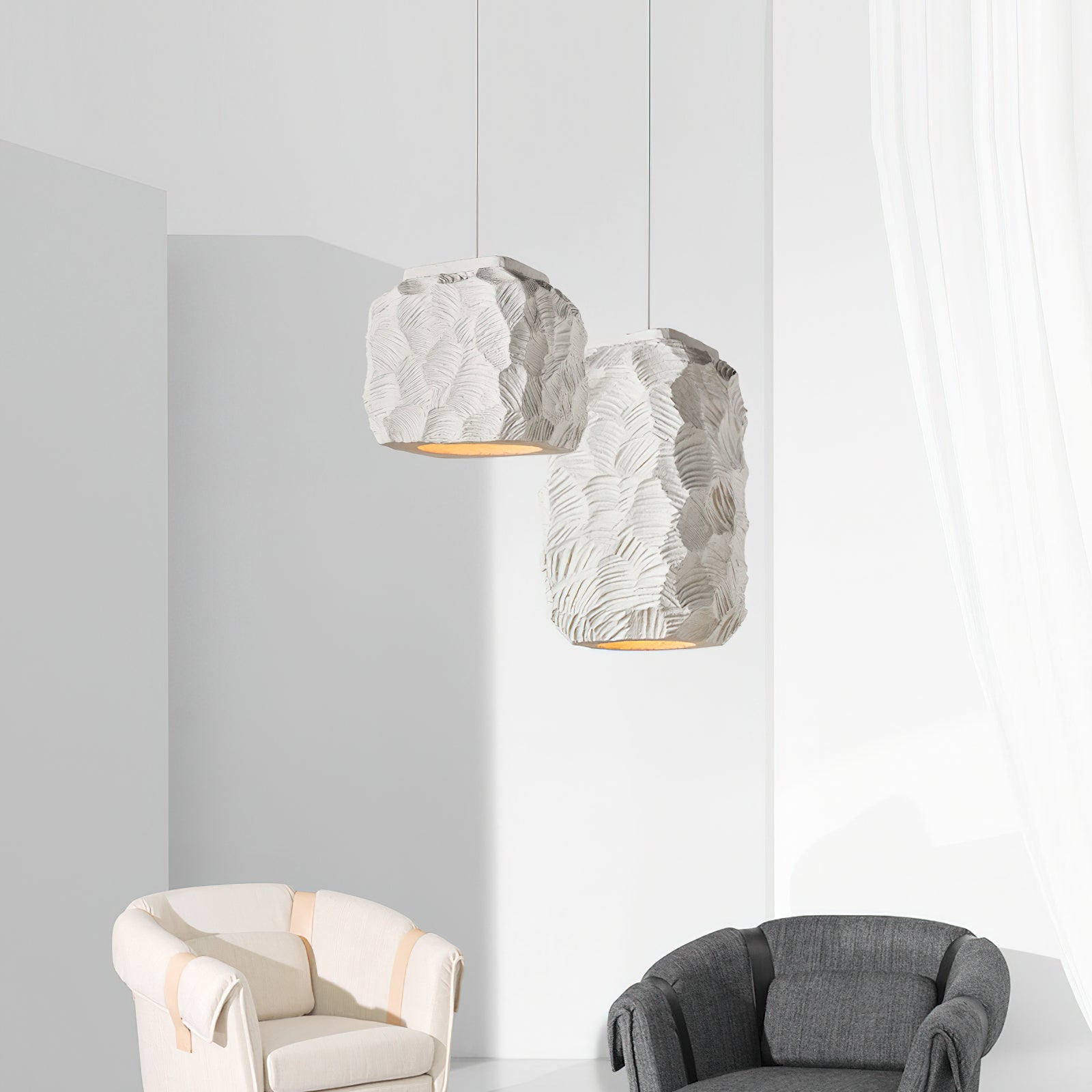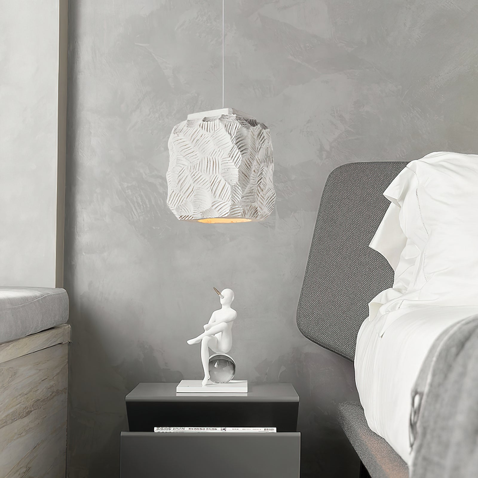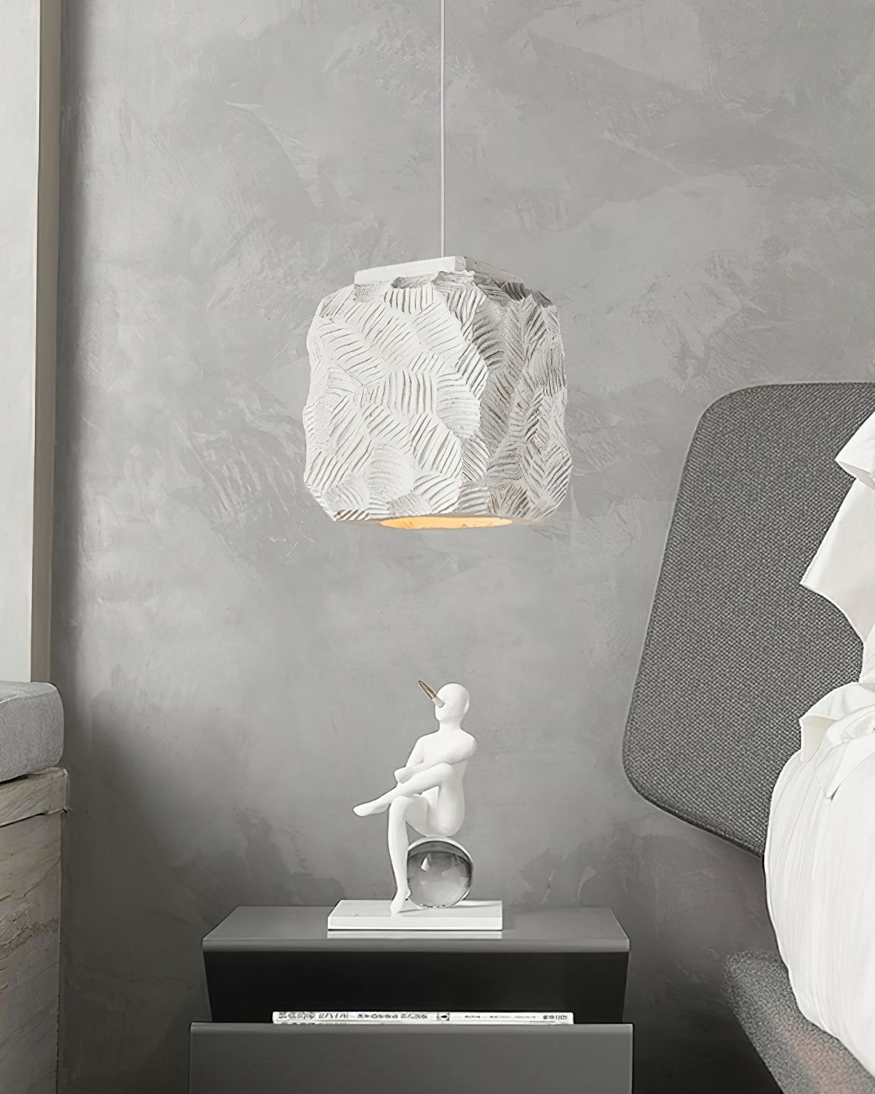 Experience the ultimate in modern elegance with the Zola Pendant Light from Mooijane. Crafted from high-quality resin, its geometric shape and clean lines add a striking visual impact to any space. Whether in a bedroom or office, this pendant lamp illuminates with style and sophistication.